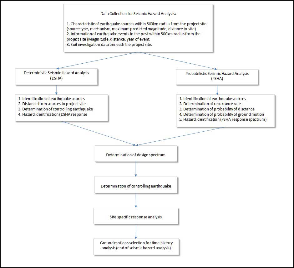 Earthquake data and time history records are usually gathered from online platforms, while earthquake sources characteristics obtained from literature study.  In this project, additional geology data was acquired by installing 4 seismographs in the vicinity of the dam, to determine whether new sources are apparent. A reasonable assumption for shear wave velocity values were taken based on bore log data.